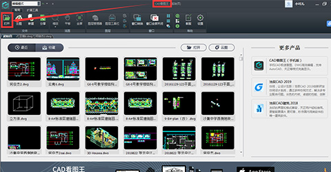 第三種:在浩辰CAD看圖王(電腦版)的起始頁面中,有個很明顯的【打開】標志。