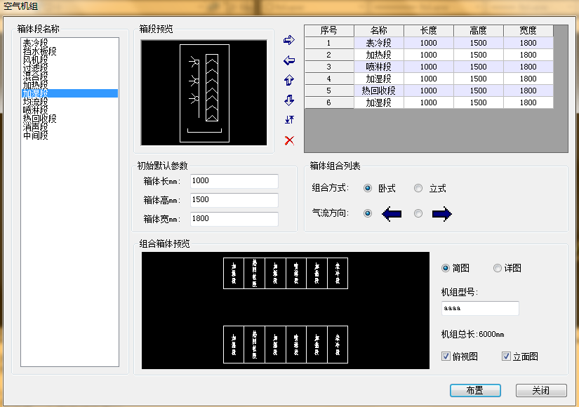 功能:對風系統(tǒng)空氣機組進行組合、繪制