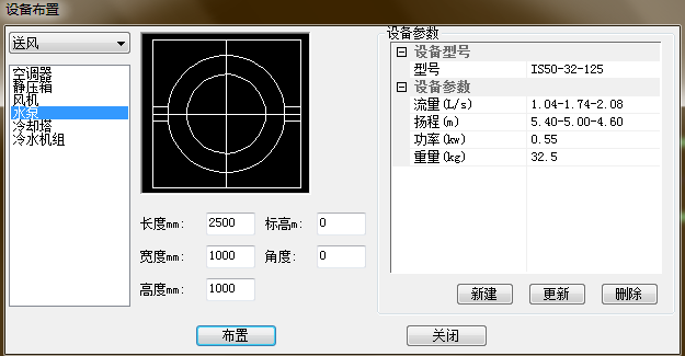 1、選擇需要布置設備所屬的系統(tǒng)和設備類型,可以通過單擊圖形進入圖庫,選擇對應類型的設備圖塊;