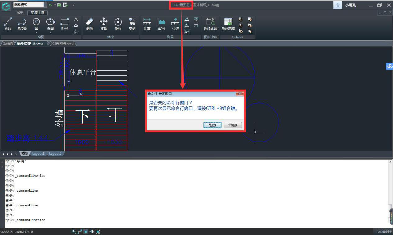 第二種:再次使用快鍵鍵Ctrl+9,會調出命令行關閉對話框,確認即可,如下圖所示: