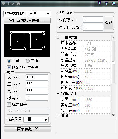 2. 室內機所對應圖塊的長寬高尺寸,讀取自室內機設備庫,用戶可手動修改;