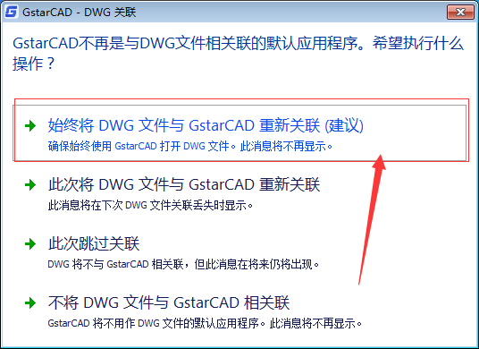 1、安裝浩辰CAD后,第一次啟動出現下面提示,直接選第一個關聯,其他都不用設置就可以了。
