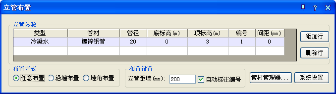 10.自動標注編號:如勾選該項,則會在每組立管布置結束后,自動調用立管標注功能,需用戶指定標注位置;