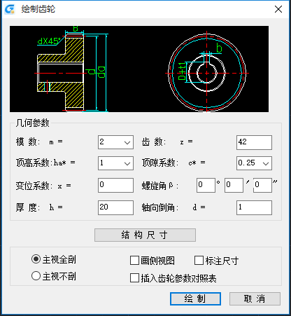 “主視全剖”、“主視不剖”單選:繪制剖視圖或不剖。
