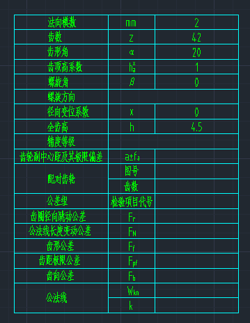 “插入齒輪參數對照表”:是否插入齒輪參數對照表,此表雙擊即可編輯。如下圖4所示