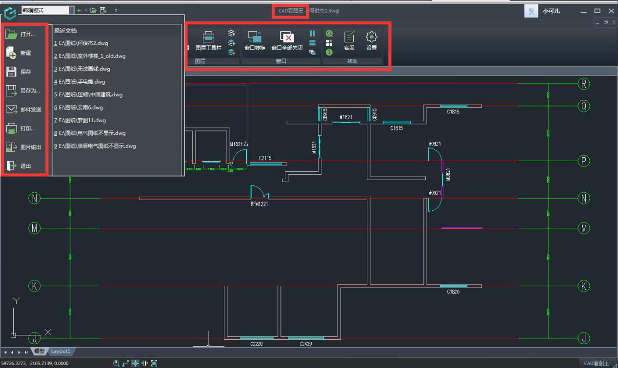 同基本的CAD軟件一樣,浩辰CAD看圖王還能對圖紙進行相關的操作,比如:新建圖紙、改格式另存、郵件發送、圖紙打印、圖片輸出、圖層管理等等。
