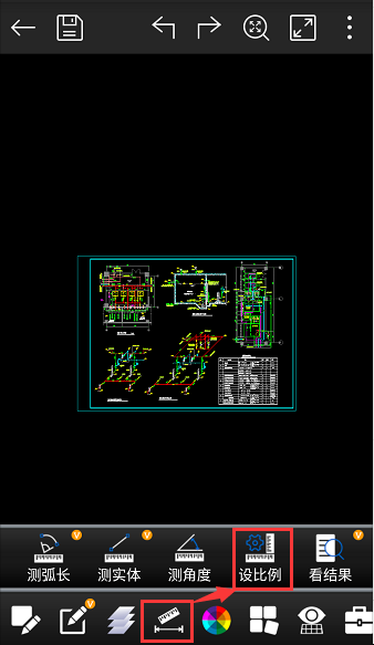 2、點擊設比例,在測量比例界面,點擊右上角的“+”號,添加需要的比例,點擊確定;