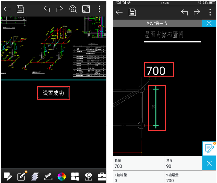 3、當在屏幕中出現【設置成功】的提示時,再次進行測量,就會出現與圖紙中標注內容一樣的測量結果了。