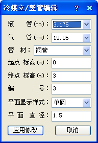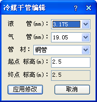 如果選擇的管線為冷媒管,彈出以下對話框: