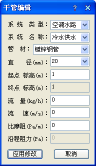 應用修改:將修改后的對話框參數應用到所選擇管線中,如參數對應值為
