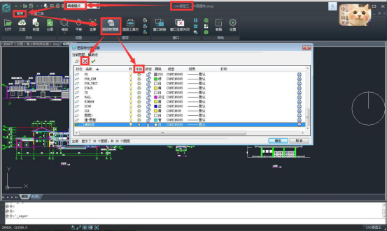 步驟五:輔助線繪制完成后,想要一鍵批量刪除輔助線,只需要再回到圖層管理,將該圖層凍結或者刪除就可以了。