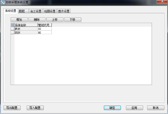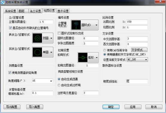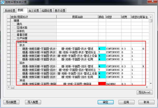 圖層設置選項,可以設置地板采暖模塊用的圖層,線寬、顏色、線型等