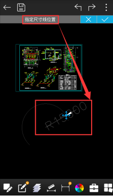 Step 3:點擊指定尺寸線位置,拖動圖標調整半徑標注的位置。