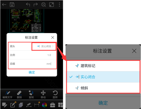 可編輯弧長標注箭頭樣式;標注結果的比例;還可在結果中添加后綴。