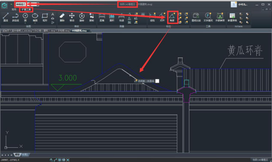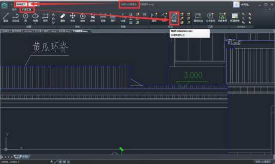 步驟二:在編輯模式,擴(kuò)展工具欄中選擇角度標(biāo)注功能。