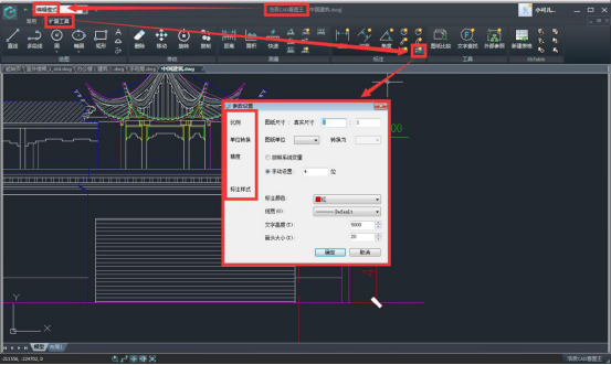 點(diǎn)擊之后就會出現(xiàn)參數(shù)設(shè)置對話框,在對話框中我們可以根據(jù)需要設(shè)置標(biāo)注的比例、精度、以及標(biāo)注樣式中的標(biāo)注顏色、線寬、文字高度和箭頭大小,還可以進(jìn)行單位的轉(zhuǎn)換,以達(dá)到我們想要的標(biāo)注結(jié)果。