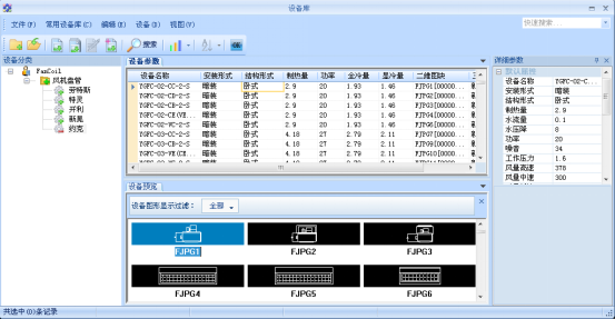 說明:設(shè)備庫顯示所有風(fēng)機(jī)盤管的詳細(xì)參數(shù)和顯示對(duì)應(yīng)的圖塊,用戶可以在此處進(jìn)行數(shù)據(jù)添加或者修改等處理,也可以制作新圖快。