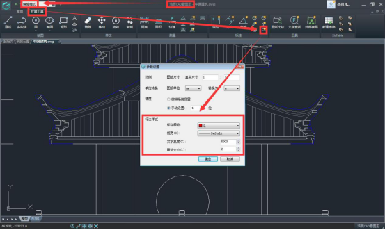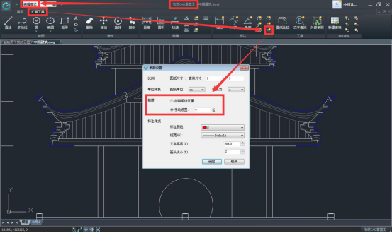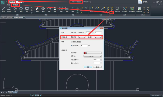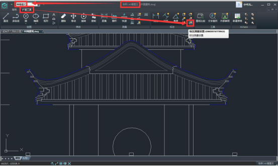 步驟二:在編輯模式,擴(kuò)展工具欄中選擇標(biāo)注測量設(shè)置功能。