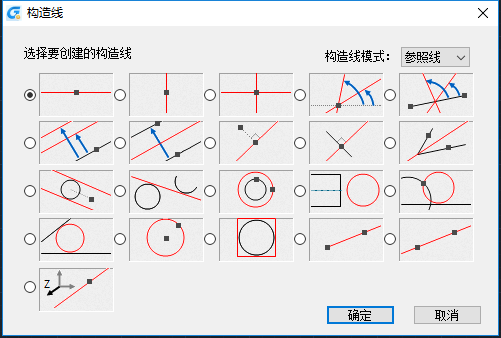 在浩辰CAD機械軟件中調用【浩辰機械(M)】→【繪圖工具(D)】→【構造線(S)】→【構造線(S)】或輸入“GMCONSTLINES”命令,就會彈出如下圖1所示對話框: