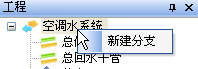 用戶可以按文字提示,新建立管,新建或刪除分支,也可以對分支重命名;右鍵中“復(fù)制分支”命令見本節(jié)編輯中高級復(fù)制;另外,水力計算時,點(diǎn)【提取信息】按扭,在圖中拾取供水的起點(diǎn),以及回水的終點(diǎn),可以直接將平面圖中分支的信息讀取到計算器當(dāng)中。