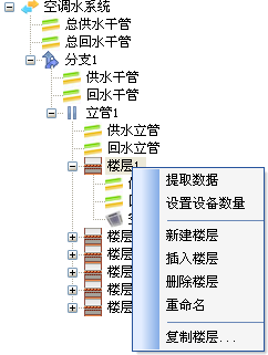 用戶可以按文字提示,提取數(shù)據(jù)、設(shè)置設(shè)備數(shù)量,新建或刪除樓層,也可以對樓層重新命名;右鍵中“復(fù)制樓層”命令見本節(jié)編輯中的高級復(fù)制 。