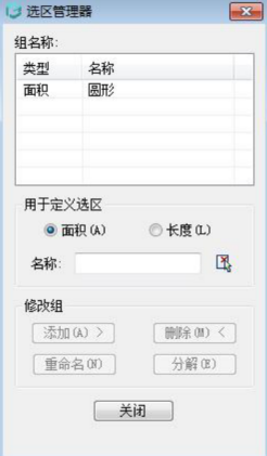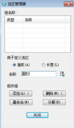 回車,“選區管理器”對話框列表中增加了“圓形”項;
