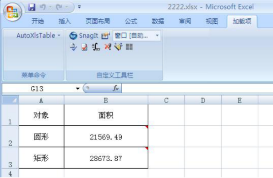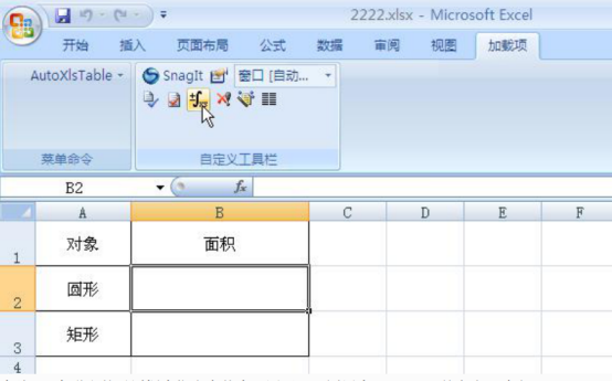 選中“圓形”右側的單元格,點擊加載項中的插入函數圖標;