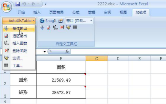 點擊 AutoXlsTable 下拉列表中的“整體輸出”選項;
