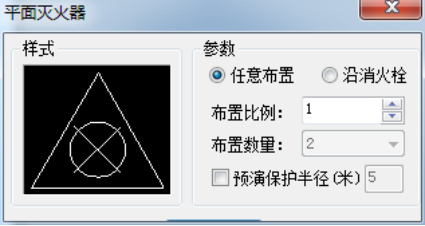 用戶運(yùn)行【消防】菜單中的【布滅火器】命令,彈出如圖對話框: