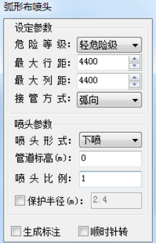 用戶運行【消防】菜單中的【弧形噴頭】命令,彈出如圖對話框: