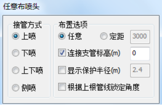 用戶可對噴頭的形式、管道標高、噴頭比例和噴頭是否與管線連接進行設置。
