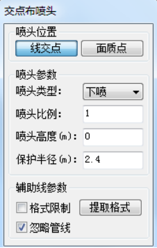 用戶運行【消防】菜單中的【交點噴頭】命令,彈出如圖對話框: