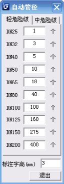 (3)改變標(biāo)注的數(shù)量,軟件會(huì)自動(dòng)記憶。初始值為規(guī)范中數(shù)值,大于100的管徑初始取值的依據(jù)為老噴規(guī)合訂本。(綠皮)