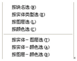 在浩辰CAD中還有一些預設好條件的選擇過濾器,例如按塊名選、按實體類型選、按圖層選和按顏色選,以及組合兩個條件的過濾器,如按實體-圖層選、按實體-顏色選和按圖層-顏色選。