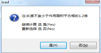 (2)在確定作用面積框選矩形時,其長邊與作用面積有一個1.2倍平方根的關系,當框選有誤時,軟件會提示: