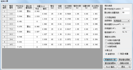 用戶直接點擊【限定管徑復算】按鈕,軟件便按照規范中噴淋管徑的表格,進行流量和水頭損失的計算。
