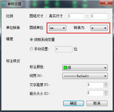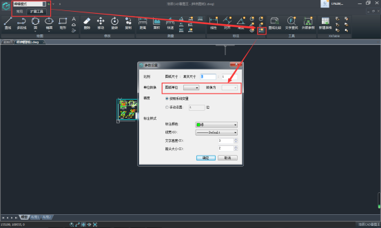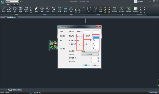 3、點擊單位轉換參數后面的圖紙單位和轉換為,選中需要的單位,進行轉換,點擊確定。