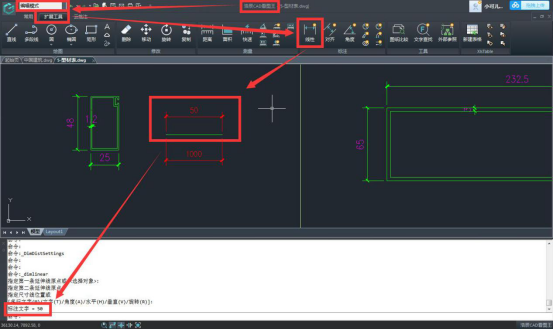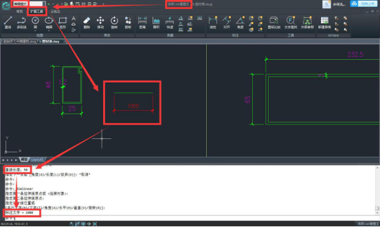 又一次驗證成功,從上面的截圖中我們可以明顯的看到經過修改CAD測量標注比例,標注的結果就變成了我們想要的50,但是之前的標注結果還是1000,因為在浩辰CAD看圖王電腦版中,修改了標注測量的參數后,只會改變之后的標注,對于之前已經標注好的部分,是不會發生任何改變了,這也就說明在浩辰CAD看圖王電腦版中我們是可以設置多個不同的標注比例!