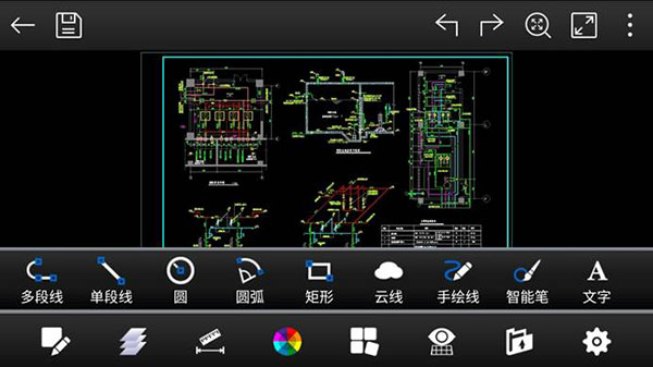 極速看圖模式界面簡潔,方便快速看圖,想看就看,但功能齊全,具有的功能有圖層、測量、頁面布局、圖紙導(dǎo)出、返回、全屏、縮屏等。