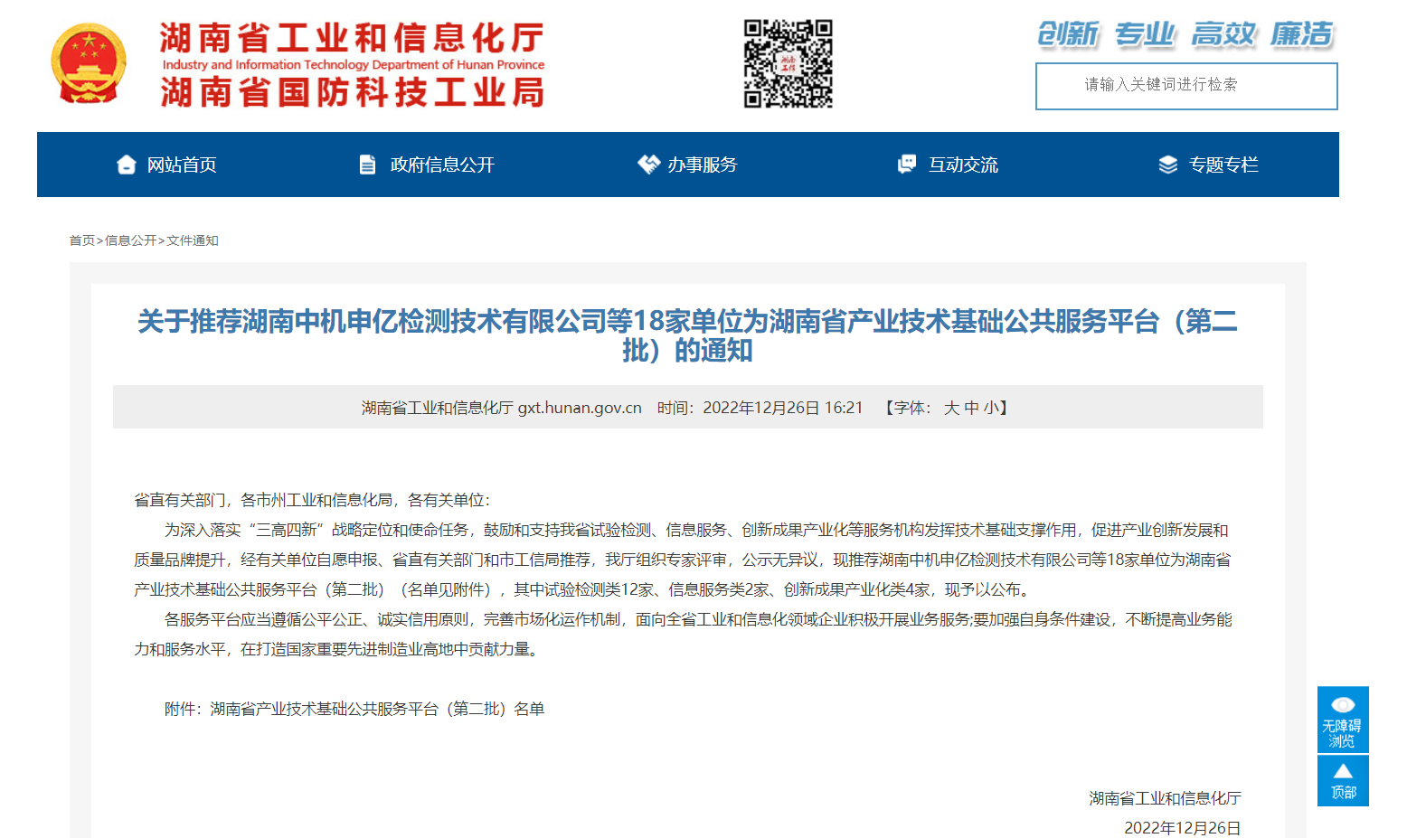 - 喜報(bào)!熱烈祝賀公司入選湖南省產(chǎn)業(yè)技術(shù)基礎(chǔ)公共服務(wù)平臺(tái)