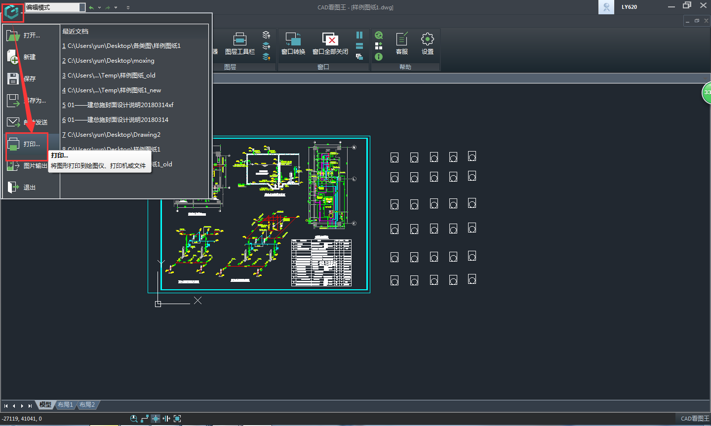 軟件有覽圖模式和編輯模式,覽圖模式,做到了快速打開圖紙即可瀏覽,方便又快捷;軟件的編輯模式下,是為了方便大家進行一些簡單的編輯操作,與常用的編輯工具和擴展工具;常用工具包括繪制移動、縮放、圖層管理等,擴展工具包括直線、多線等的繪制、文字編輯、圖紙比較等。當(dāng)我們拿到一張圖紙,為了看圖方便或者其他方面的需要,我們會將圖紙打印出來,浩辰CAD看圖王電腦版為了滿足大家的使用,在軟件中加入了打印的功能,但是,我們在使用此功能的時候會有個困擾,如何選擇打印的內(nèi)容?如果不能按照圖框選擇打印內(nèi)容,打印出來的圖紙可能會出現(xiàn)看不清的功能,那么,當(dāng)遇到這種情況該怎么辦呢?
