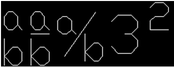 如果輸入“^2”,選中這兩個字符后點(diǎn)堆疊按鈕后就可以得到下標(biāo)的效果。如果輸入“2^3”,選中這三個字符后點(diǎn)堆疊按鈕,就會出現(xiàn)2在上3在下的效果。如果想輸入3的平方,需要輸入”32^”,然后只能選中“2^”進(jìn)行堆疊處理。其他兩個堆疊符號可以生成帶斜線或帶橫線的分?jǐn)?shù),自己可以試試。如下圖所示:
