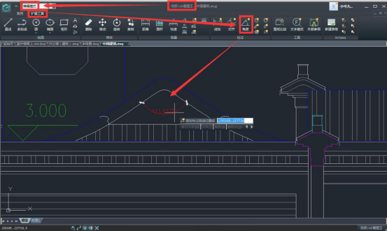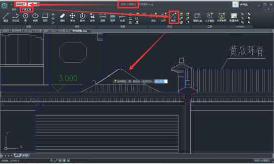 步驟二:在編輯模式,擴(kuò)展工具欄中選擇角度標(biāo)注功能。