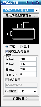 2. 風機盤管所對應圖塊的長寬高尺寸,讀取自風機盤管設備庫,用戶可手動修改;